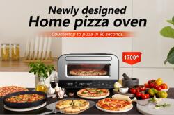 A 450 °C-os maximális hőmérséklet és a természetes kordierit sütőkő tökéletes párosa gyors és egyenletes sütést biztosít. A külön szabályozható felső és alsó fűtőelemnek köszönhetően teljes kontrollt tarthatsz a sütés minden pillanata felett – így mindig ropogós tésztájú, tökéletesen átsült pizzát készíthetsz. Egy autentikus nápolyi pizza mindössze 2 perc alatt elkészül! Műszaki adatok Kettős fűtőszál: felső 1200 W, alsó 500 W Hőmérséklet-tartomány: 80 °C – 450 °C Időzítő: 60 perces, digitális kijelzővel Üzemmódok: 6 program (manuális, nápolyi, vékony, tepsis, kör alakú pizza, fagyasztott) Hőmérsékletszabályzás: különálló vezérlés felül és alul Belső világítás: igen Hűtőrendszer: kényszerített szellőzéses, hideg falú kivitel Ajtó: háromrétegű boroszilikát üveg a maximális hőszigetelésért Tartozékok: 32 × 32 cm természetes kordierit kőlap Tápellátás: AC 220–240 V ~ 50–60 Hz Teljesítmény: 1600 – 1850 W Méretek (Sz × M × Mé): 44 × 28.2 × 47.5 cm Tömeg: 12.2 kg Az otthoni pizzasütő 80–450°C (167–842°F) hőmérsékletet ér el, és 90 másodperc alatt képes igazi, fatüzelésű stílusú pizzát sütni – forgatás nélkül. Háromféle hőhatást reprodukál, amit egy hagyományos kemence is létrehoz: vezetéses (conductive), sugárzó (radiant) és áramlásos (convective) hőt.