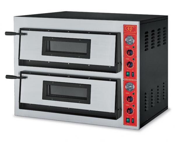 Belső világítás, hőmérséklet kijelző, lenyitható ajtók, megfigyelőablak, gőzkieresztés, külön szabályozható alsó-felső fűtés. A hőmérséklet 50-500°C között szabályozható. Manuális vezérlés, tekerőgombok. Körbe samottos kivitel. Kapacitás: 8 db Ø 360 mm-es pizza. Műszaki jellemzők: Teljesítmény: 12 kW Feszültség: 400 V Kamraméret: 720x720x140 mm Külső méret: 1010x850x750 mm Súly: 174 kg
