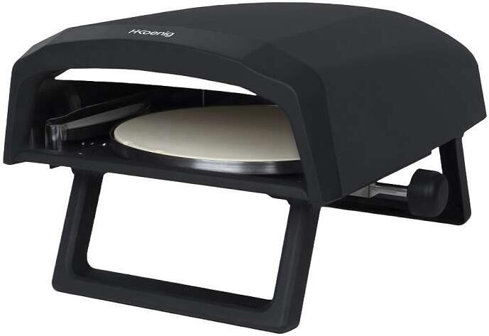 Készítsen pizzát a legautentikusabb módon a H. Koenig GINO640 gázsütőjével! Nem kell szakácsnak lenni ahhoz, hogy ízletes olasz pizzát főzzön. Ezzel a sütővel néhány perc alatt elkészítheti pizzáját a tűzhelyen! A rozsdamentes acélból készült forgó kőkemencében a lehető legrövidebb idő alatt, propán- vagy butángázzal akár 500°C-ot is elérhet.  A hőmérsékletet a kapcsoló segítségével szabályozhatja. A kordierit kő (a nagyon magas hőmérsékletekkel szembeni ellenálló képességéről ismert ásvány) rendkívül gyors hőelnyelést tesz lehetővé, így tökéletes főzést tesz lehetővé, különféle ételekhez, például pizzához, flambírozott tortákhoz, kenyérhez, quiche-hez, stb. (FIGYELEM, legfeljebb 360°C!) A nagy, 32 x 32 cm-es főzőfelület lehetővé teszi bármilyen méretű pizza elkészítését.